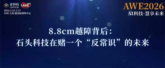 在上海AWE 2026石头科技的展台上,一台名为石头G-Rover的扫地机器人抬起轮足,稳稳迈上台阶,然后开始扫楼梯。这个画面简单,却有点象征意义——我们等了多年,终于等到扫地机器人学会“走路”的基本功。