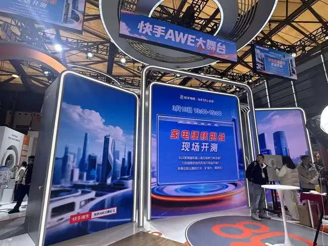 快手商城以“快手AWE大舞台”主题参与展会,通过测评舞台、新品展示区和用户案例区三个板块集中呈现平台消费趋势。数据显示,2025年累计有超过4600万用户在快手购买过家电或手机数码产品。