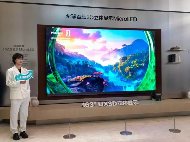 今年AWE,Micro LED仍然是极具未来感的技术,同时也有一些变化。海信这次推出了全球首款3D立体显示Micro LED,它的核心功能是能将2D画面实时转化为3D。