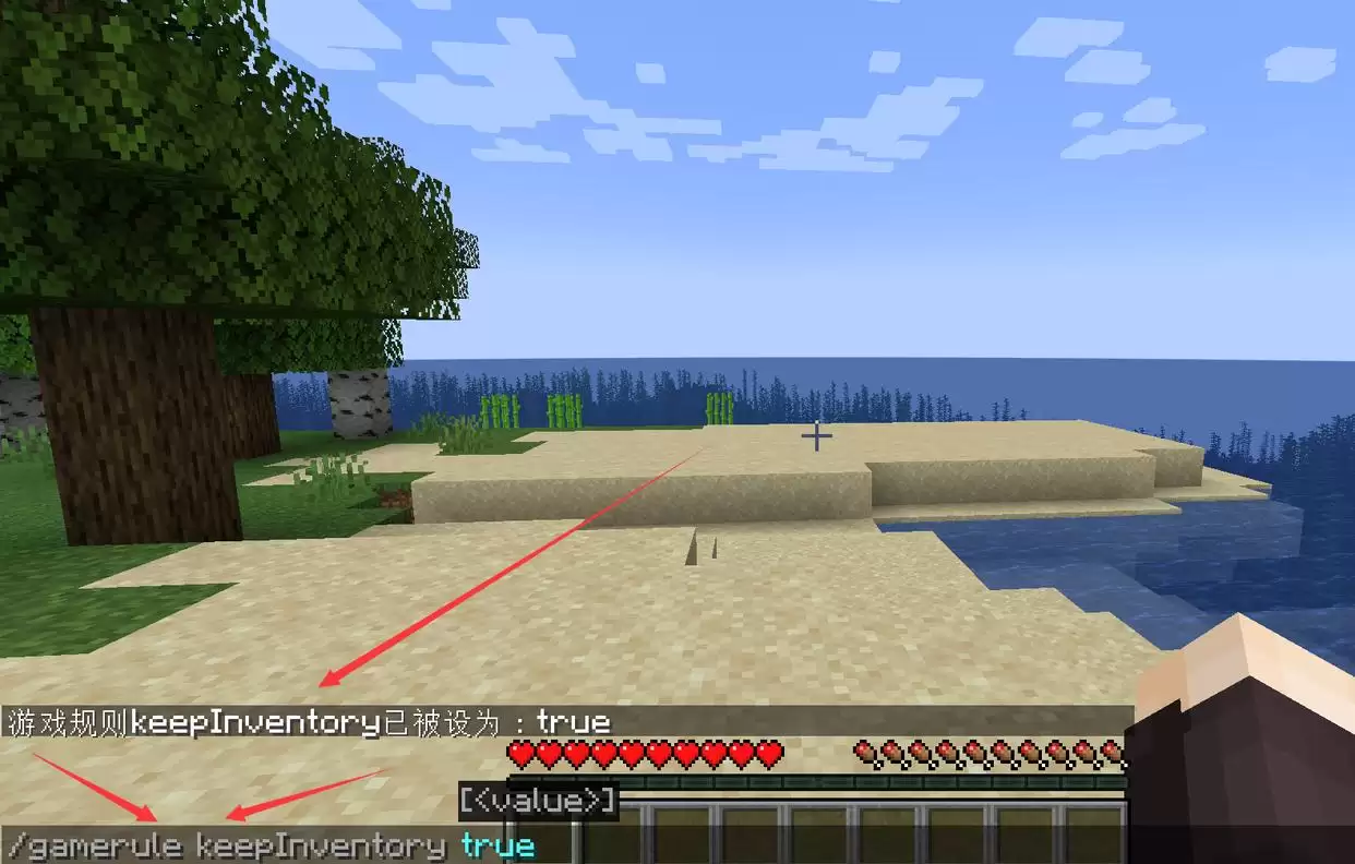 之后在游戏里按下“T”键打开聊天栏(也就是控制台),然后输入“/gamerule keepInventory true”这条指令,最后敲一下回车键,就成功激活“死亡不掉落”功能了。当然,如果想关闭的话也很简单,只要把指令里的“true”换成“false”就可以了。