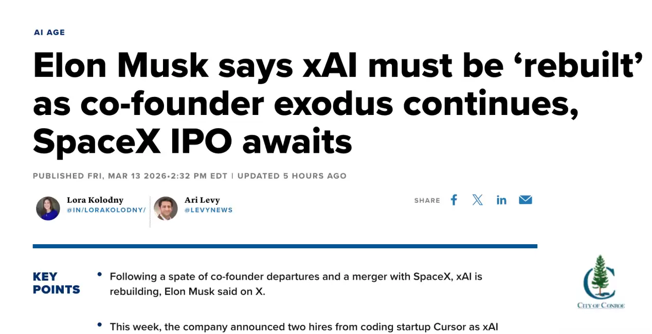 联合创始人接连出走,马斯克坦言xAI需“重建”