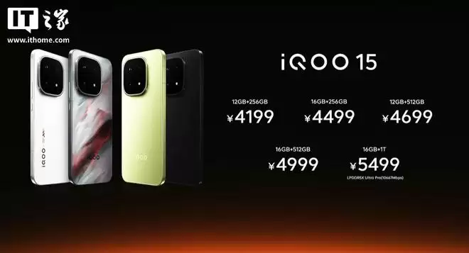 作为参考,iQOO 15手机搭载2K三星珠峰屏,首发的M14发光材料是三星显示最新、最好的发光材料,首发2K LEAD OLED显示技术,搭载自研色彩校准算法、行业独家游戏色彩增强算法、全新“无偏振自然光显示技术”、1nit极暗柔光、悦目护眼2.0、硬件级游戏护眼、DC调光等,售价4199元起(IT之家注:12+256GB版)。
