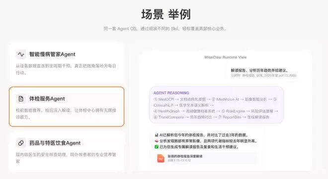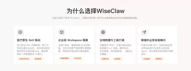 而WiseClaw的看点就在于:它把这种「Agent OS」式思路第一次大规模带进了中国医疗健康ToB语境!