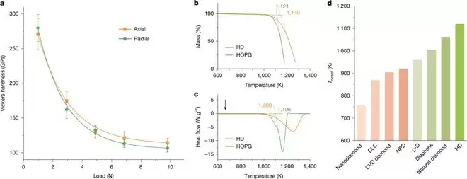 测试表明,六方金刚石比传统钻石更坚硬,更耐氧化。但令人惊讶的是,它的硬度仅比普通钻石略高,而非早期理论预测的 近 60%。
