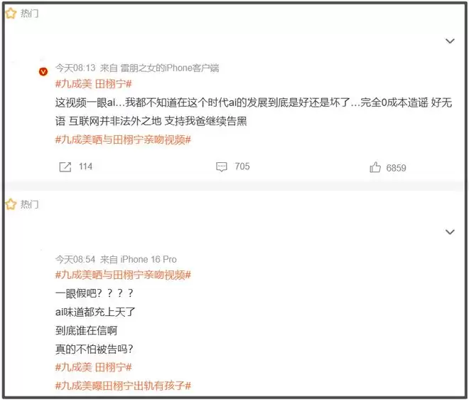 九成美放出恋爱记录视频之后,被反复质疑利用ai造假,为了澄清自身,九成美放出了第二波锤,也就是大量亲密照。