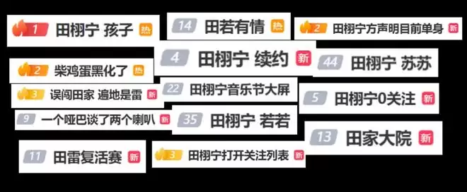 湖南台综艺《你好,星期六》删除了田栩宁所有镜头,明星孙楠工作室发布综艺花絮,也给田栩宁打了码,近一年时间,田栩宁主要工作就是商务宣传和商业演出,鲜少出现在主流场合,更别提出演剧集播出了。