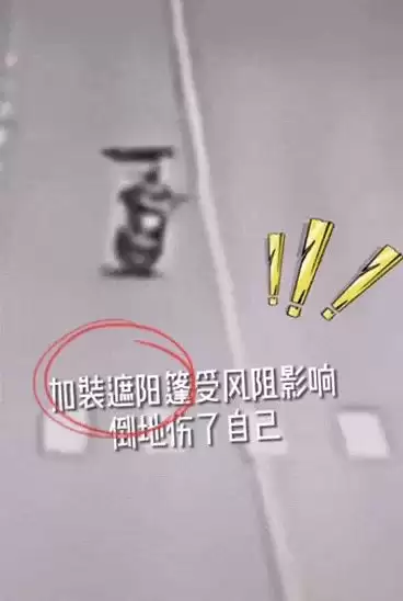 由于电动自行车身轻,刹车摩擦系数小,加装雨篷后,容易引发电动车重心升高,增加驾驶难度。同时加装雨篷的电动自行车宽度和高度会增加,体型变大,受风面变大。遇到大风天气,驾驶人往往因难以控制行车平衡而发生事故。在行驶过程中雨篷容易受侧风力影响,极易造成方向失控。
