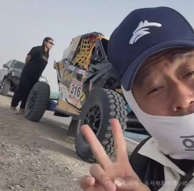 那会儿吴京突然出现在环塔拉力赛的赛道上,开着一辆命名为 “驾长车” 的UTV赛车,顶着5183公里的沙漠戈壁,沙漠赛段占了65%。