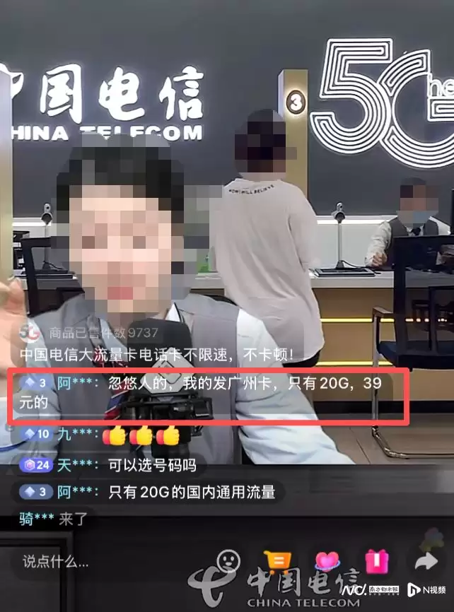 而在该店铺的直播间内不断有网友留言反馈,在直播间下单后自己收到的手机卡套餐为39元20G,与商品详情页中提到的低月租大流量不符。