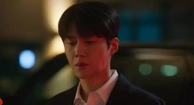 勇宇下楼打车,结果来的出租车上坐着申智善,这个情节还挺有细节的,因为之前申智善去酒吧发泄一通之后才来上班,喝了酒只能打车过来,才会跟勇宇遇上。