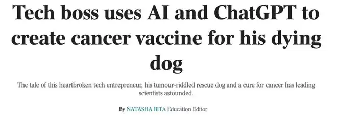 https://www.theaustralian.com.au/business/technology/tech-boss-uses-ai-and-c h a tgpt-to-create-cancer-vaccine-for-his-dying-dog/news-story/292a21bcbe93efa17810bfcfcdfadbf7