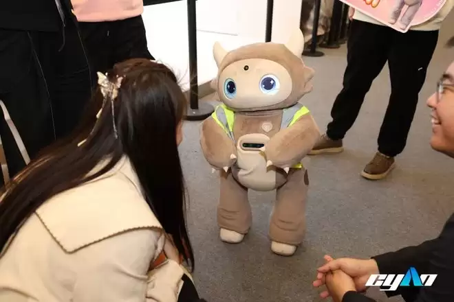 Amoo在现场交互中传神地表达着丰富情绪,引得观众纷纷驻足。当被要求表演唱歌时,它会“顾左右而言他”,用懵懂的大眼神报以无辜的注视,像极了“在亲朋面前被迫营业的小朋友”;当被调侃“笨笨”时,它立即双眼横眯、双手叉腰,伴着“呐—呐—”的阵阵抗议声,将不满演绎得活灵活现。