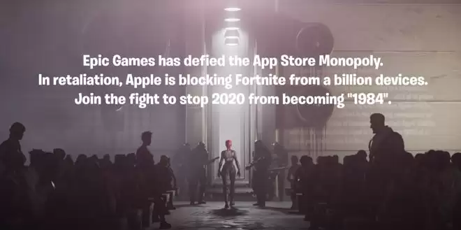 当时战况之激烈,Epic 直接翻拍了 1984 年苹果经典广告( 控诉老恶龙 IBM ),控诉苹果公司从“ 当年的屠龙少年,如今变成恶龙 ”,而 E 宝就是新一代向恶龙挥刀的勇士。