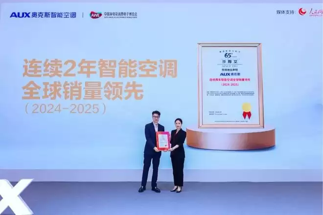 全球知名咨询机构沙利文,以及中国领先的家电家居市场研究公司奥维云网,现场分别向奥克斯空调颁发“智能空调全球销量领先”“AI智能空调中国销量第一”两项重磅证书,这不只是意味着奥克斯空调在智能时代的再次领先,也标志着距离成为全球智能空调产业领航者目标再进一步!
