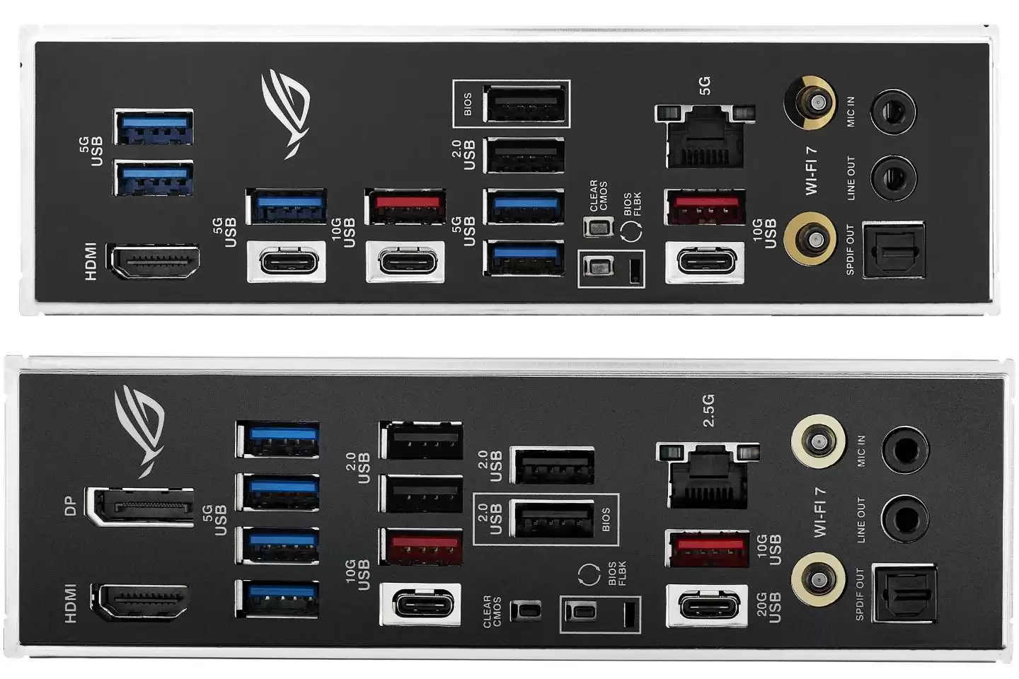 ▲ 两代B850 STRIX F GAMING后置I/O对比:上方为新款,下方为老款