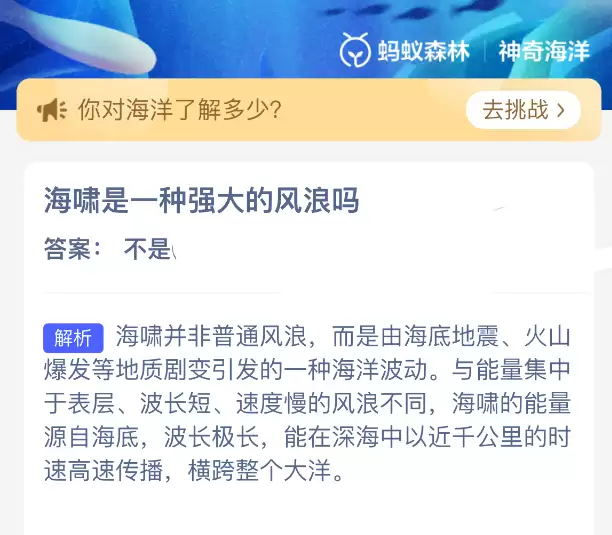 2026蚂蚁海洋科普:海啸是强大的海浪吗?今日答案