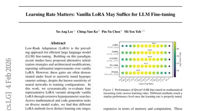 这项来自台湾大学数据科学学程、IBM研究院纽约分部以及中研院资讯所的重大研究,发表于2026年2月4日的arXiv预印本(编号arXiv:2602.04998v1),彻底改变了我们对大语言模型微调技术的理解。这个由台大、IBM和中研院联合进行的研究发现,那些被吹捧为革命性的新型微调方法,可能只是因为学习率设置不当而产生的假象。