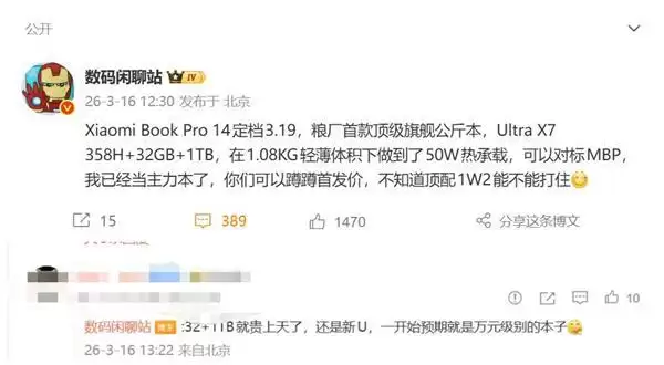这种全方位的材料革新与性能堆叠,标志着小米正在向超高端笔记本市场发起强力冲击,新品会在3月19日亮相。
