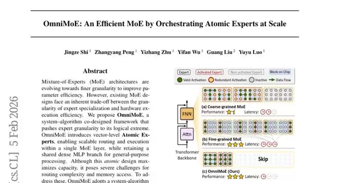 这项由香港科技大学广州校区和北京人工智能研究院联合完成的研究发表于2026年2月,以论文编号arXiv:2602.05711v1在预印本平台发布。研究团队设计了一个名为OmniMoE的创新AI架构,解决了当前大型语言模型在处理复杂任务时面临的计算效率难题。