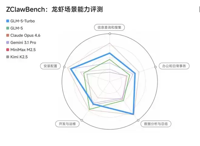 GLM-5-Turbo正是在这个背景下出现的。该模型是目前行业内第一个从训练阶段就专门针对OpenClaw核心需求进行优化的基座模型,专项强化了工具调用稳定性、复杂指令拆解、定时与持续性任务执行、长链路高吞吐等龙虾场景核心能力,最大输出Token可达128K、上下文长度200K。