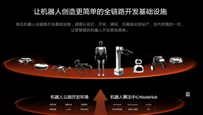 与市面多数机器人企业不同,地瓜机器人的定位是机器人软硬件通用“底座提供商”,并非自研机器人本体,为所有开发者提供从芯片、操作系统、算法到云平台的软硬件基础设施,覆盖从芯片、算法到软件各个环节,要成为机器人时代的“母生态”与“基础设施提供商”。