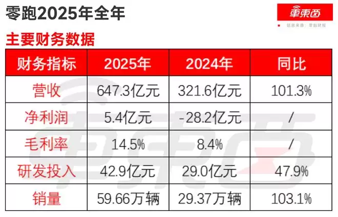 在2025年,零跑首次实现了年度盈利。2025年全年,零跑的净利润为人民币5.4亿元,而2024年全年为亏损人民币28.2亿元。