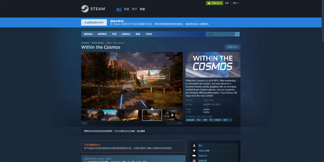 《内部宇宙》是由debdev开发发行的一款科幻FPS游戏,这款游戏的官方网站是一个正式页面,此外Steam平台的购买页面也属于官方渠道。进入游戏购买页面后,基本上就能了解到这款游戏的全部信息。