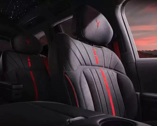 黑武士的内饰设计巧妙融合东方美学与现代科技。车内采用丹墨配色方案,以大面积的“玄墨”为基调,仅在座椅缝线、头枕等细节处点缀“丹砂”红色,营造出低调奢华的气质。尤为值得一提的是,新车配备了百万级豪车才有的星河天幕星空顶,598颗灯珠密布其中,支持三种不同模式,为驾驶者带来沉浸式的星空体验。
