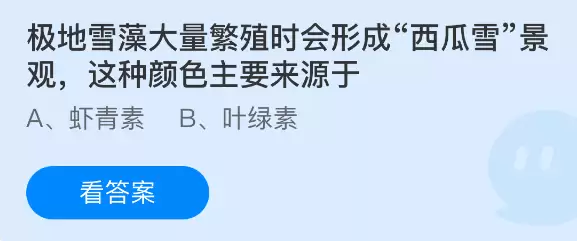 极地雪藻大量繁殖形成西瓜雪,颜色来源支付宝蚂蚁庄园今日答案