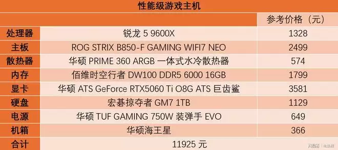 最后我们也给大家推荐一套基于ROG STRIX B850-F GAMING WIFI7 NEO主板的性能级ROG信仰锐龙主机。主机选择了锐龙5 9600X处理器+RTX 5060 Ti的核心硬件,从游戏性能上来看,这套配置配合ROG STRIX B850-F GAMING WIFI7 NEO主板和华硕机电散,在主流的3A游戏和电竞网游中都可以获得出色性能表现。另外考虑到目前内存的价格,这里推荐大家先上单条16GB内存,根据我们此前的实测,单条16GB内存和32GB套条间的游戏性能表现差距很小,综合差距不到5%,因此对于部分预算紧张的玩家来说单条16GB内存完全够用,省下的钱可以买一套不错的外设,等后面内存价格合适了再看自己的需求补上一条内存即可。