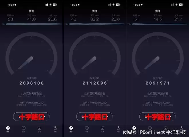 【实测结果】使用测速软件进行实测,下载速度达到了35Mbps左右,上传速度也达到了34.3Mbps左右。