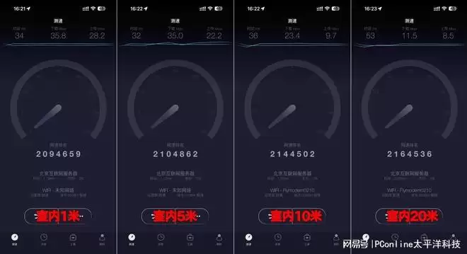【实测结果】1米处下载速度为35.8Mbps,5米处下载速度为35Mbps,10米处下载速度为23.4Mbps,20米处下载速度为11.5Mbps。