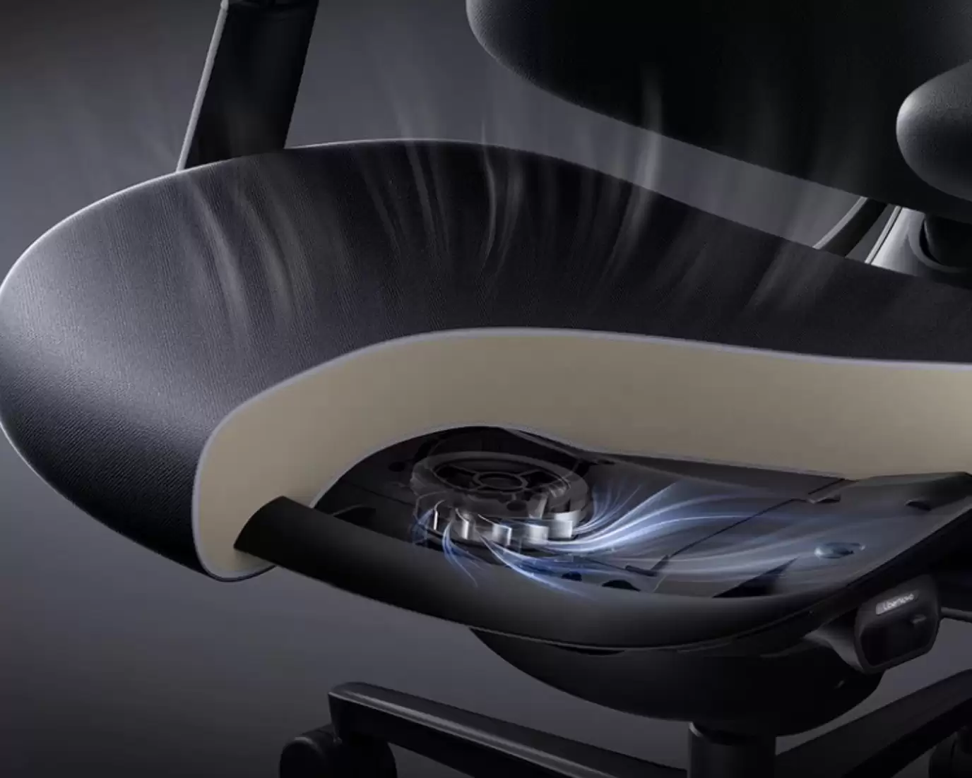 OC1+Pro给出的解决方案,是豪华汽车座舱同款吸气式座垫新风系统。五层透气结构叠加吸风离心风扇,形成稳定空气循环,两档风力调节配合智能感应启停,用户落座自动开启、离座暂停。