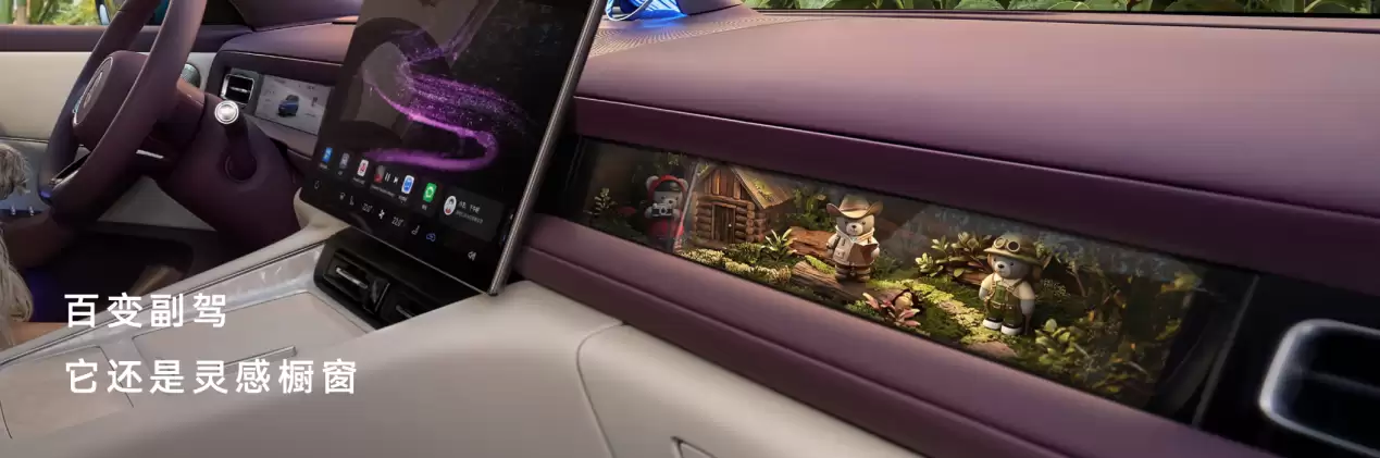 座舱内创新采用“大脑洞”的“百变副驾”设计,支持墨彩相册、律动香氛等多种配件。灵感橱窗基于安全前提设计,兼顾可玩性和安全性,可作为年轻人的专属潮玩展台,陈列萌粒、迷你车模、最新磁吸IP公仔等,为每一次出行增添无限创意。灵感橱窗不影响气囊弹出,内部支持磁吸,外部采用防爆钢化玻璃盖板,确保车内乘客安全。