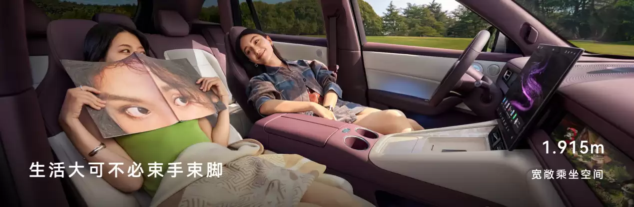 问界M6拥有1.915m的宽敞乘坐空间,为驾乘者带来开阔自由的舒适体验,生活大可不必束手束脚。纯电版至高202L超大容量智能前备箱支持智能电动开合、智能防夹,实现轻轻松松的大开大合。前排全新人机工学运动座椅采用宽体包裹、极简绗缝。前排配备双零重力座椅,展开后呈现零压舒享姿态,为午间小憩、长途驾驶中的短暂休息带来放松体验。