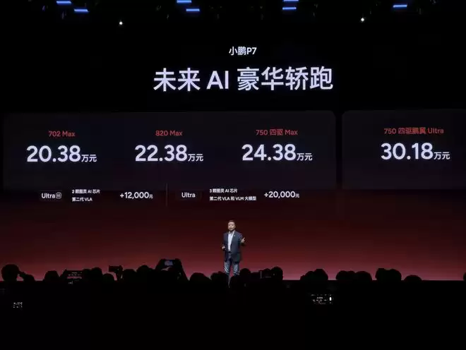 网易汽车报道3月18日,小鹏P7官宣新增星曜红、暗夜黑、星云(参数丨图片)白三款全新外观色,并搭载小鹏最新的第二代VLA。同时,小鹏P7新增Max、Ultra SE两大版本,最新指导售价20.38万元起。其中,702 Max版20.38万元、820 Max版22.38万元、750四驱 Max版24.38万元、750四驱鹏翼 Ultra版30.18万元。在Max版基础上,加1.2万元即可升级为搭载2颗图灵AI芯片+第二代VLA的Ultra SE、加2万元可升级为搭载3颗图灵AI芯片+第二代VLA和VLM大模型的Ultra。