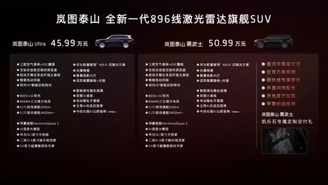 网易汽车3月17日报道3月17日,岚图汽车宣布旗舰SUV“泰山Ultra”开启量产交付,同时推出售价50.99万元的黑武士版。这款搭载896线双光路图像级激光雷达的车型,以45.99万—50.99万元的价格区间,正式进入高端智驾SUV的角逐。