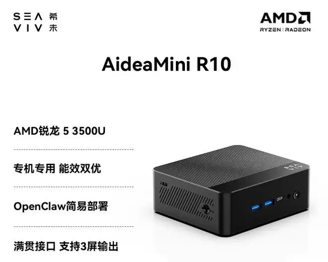 IT之家 3 月 25 日消息,SEAVIV 希未今日宣布,其基于 AMD 锐龙 5 3500U "Zen+" 处理器的“龙虾盒子”迷你主机 AideaMini R10 正式上市,准系统(无存储)版本 879 元。