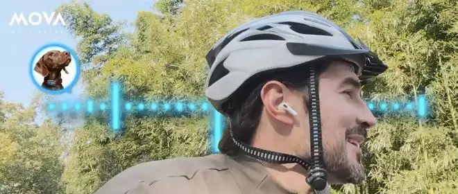 灵尾纪元旗下主品牌是「MOVA Pets」,其硬件入口不止于猫砂盆。2026 CES 上发布的 MOVA SureTrack Pro 智能项圈,把「双向通话+多重定位」做成一块极小的模组:主人即使外面工作,也能「喊」住正在拆家的狗;项圈内置的 UWB+GPS+Wi-Fi 三角定位,能把走失范围从百米级压缩到两米级。