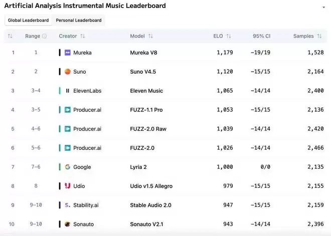 图片来源:https://artificialanalysis.ai/music/leaderboard/instrumental
