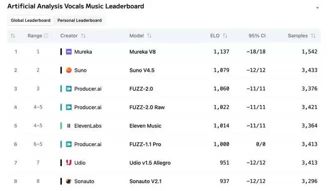 图片来源:https://artificialanalysis.ai/music/leaderboard/vocals