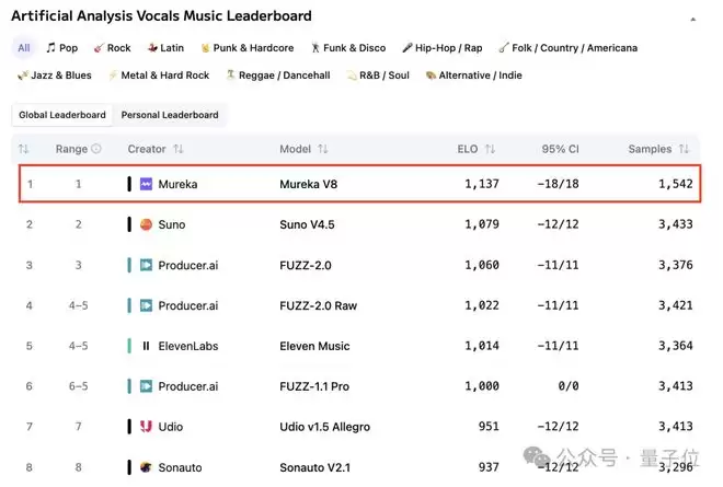 当然了,即使不谈Mureka V9,仅从V8的两次登顶,我们也已经能看到一个更清晰的变化: