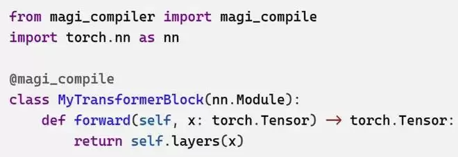 基础编译增强无需修改模型源码,magi_compile 一键装饰 TransformerBlock: