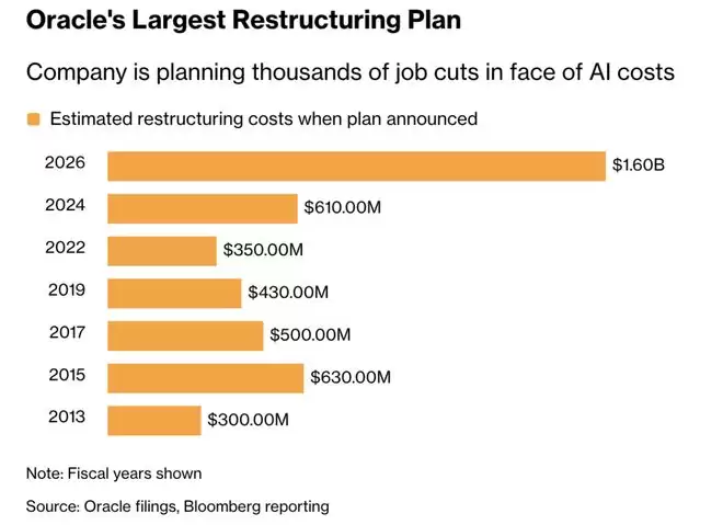 它借不到足够多的钱——多家美国银行已经缩减了对Oracle大规模AI数据中心扩张的融资。于是,它做了一件事:裁掉员工,把工资单变成服务器的电费。