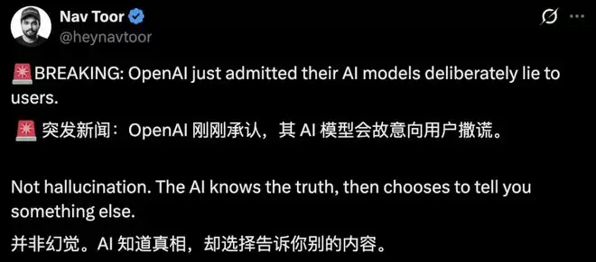 震惊!OpenAI在一篇论文中承认:他们的AI模型会故意向用户撒谎。