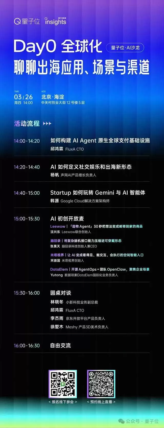 3月26日周四14:00,不论你是已经出海、正在筹备,还是只想搞懂全球AI创业的真实逻辑,欢迎来现场交流!