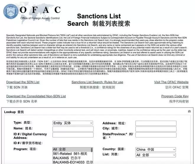 最新给的这个链接来自「美国外国资产控制办公室(Office of Foreign Assets Control)」,这是是美国财政部下属的一个部门,负责管理和执行对外经济制裁项目。