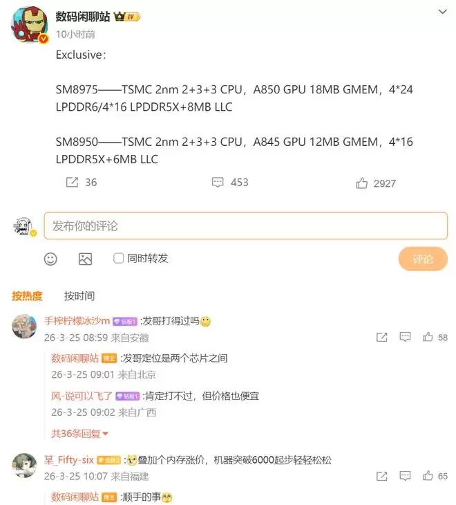 再看联发科那边,博主透露发哥定位是两个芯片之间,这个信息量不小,如果SM8950和SM8975形成高低搭配,天玑9600的定位就会被夹在中间。