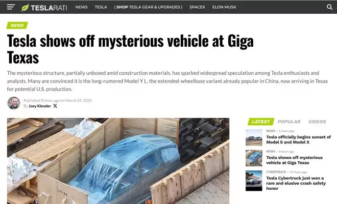 ▲当地时间3月24日,Teslarati披露特斯拉得州工厂现神秘测试车事件