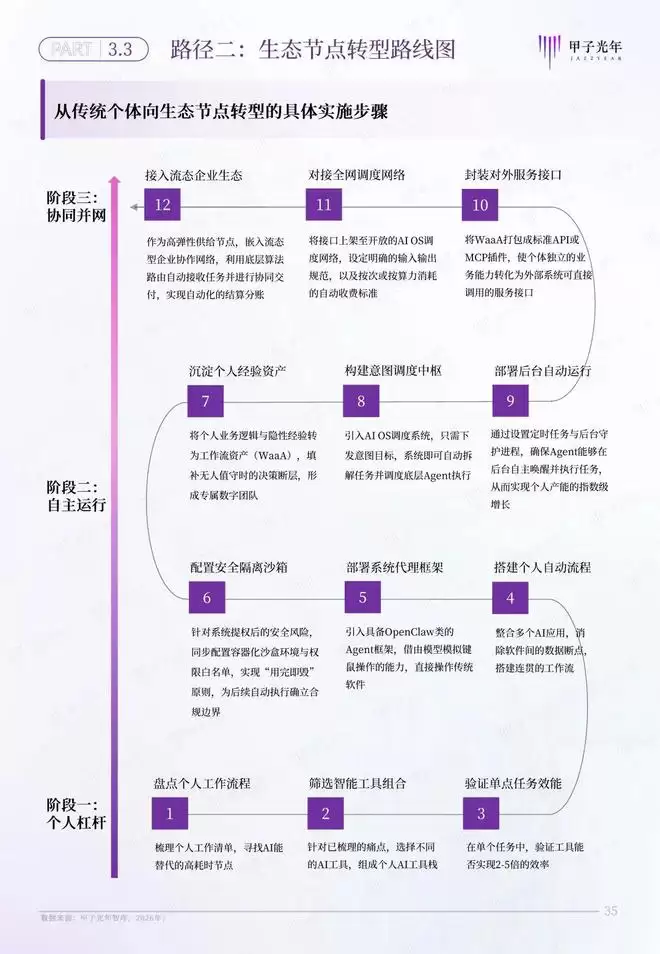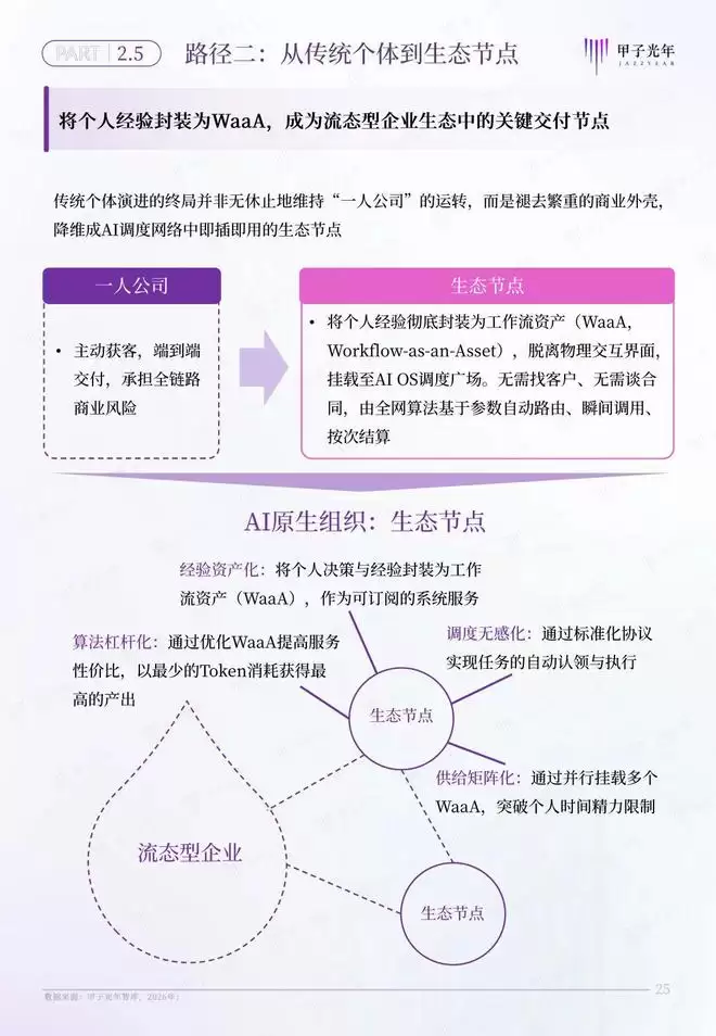 路径二:从传统个体到生态节点,将个人经验封装为WaaA,成为流态型企业生态中的关键交付节点
